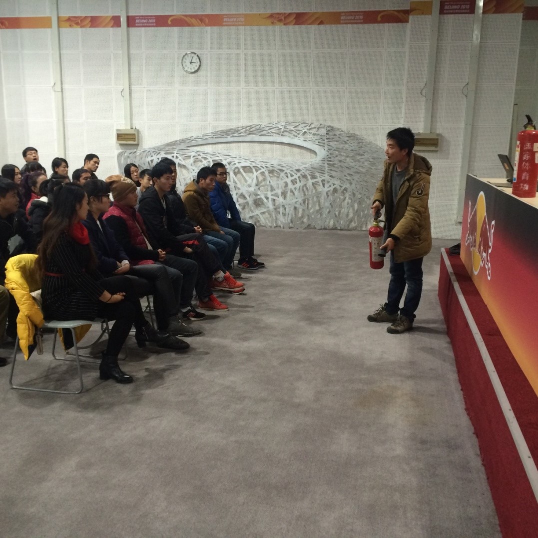 “鳥(niǎo)巢歡樂(lè)冰雪季”開(kāi)始前,組織志愿者培訓(xùn)業(yè)務(wù)技能及消防知識(shí)等