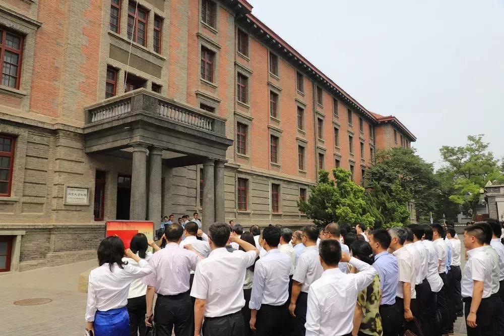 北京國(guó)資公司中層以上管理人員在北大紅樓前重溫入黨誓詞。