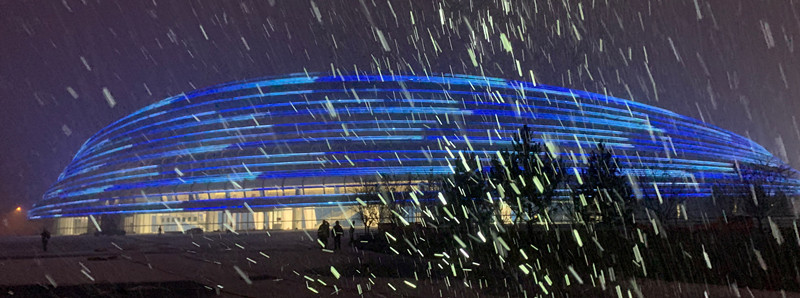 近日,國家速滑館場館啟動了外立面泛光照明和場地照明調試,夜色中的“冰絲帶”晶瑩剔透、美輪美奐。