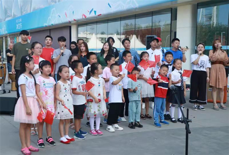 水立方、北京節(jié)奏貝貝現(xiàn)代音樂(lè)學(xué)校、現(xiàn)代音樂(lè)教育協(xié)會(huì)等單位近百余人在水立方北廣場(chǎng)相繼詠歌獻(xiàn)禮祖國(guó),《我和我的祖國(guó)》、《我愛(ài)你中國(guó)》、《北京歡迎你》、《夜空中最亮的星》、《中國(guó)》、《我和你》等耳熟能詳?shù)募t歌串燒,引來(lái)奧林匹克公園園區(qū)內(nèi)游客的圍觀,更有深受感染的觀眾自發(fā)加入合唱隊(duì)伍中。