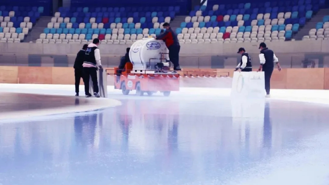 今年1月初,中外制冰團(tuán)隊(duì)在國際制冰師馬克帶領(lǐng)下首次制出速度滑冰賽道,之后為迎接4月初舉辦的“相約北京”冰上項(xiàng)目測試活動,按照冬奧標(biāo)準(zhǔn)進(jìn)行二次制冰。