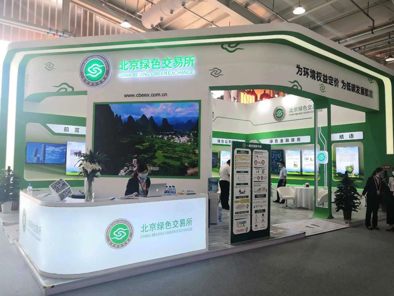 北京綠色交易所以“為環(huán)境權(quán)益定價(jià) 為低碳發(fā)展賦能”為參展主題,在展區(qū)通過互動大屏、智能機(jī)器人等多重科技元素展現(xiàn)了北京綠色交易所在環(huán)境權(quán)益交易、綠色公共服務(wù)、低碳發(fā)展服務(wù)和綠色金融服務(wù)等方面開展的創(chuàng)新探索。
