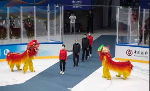 冰球比賽中融入的中國元素更是精彩紛呈。五棵松體育中心舉行的冰球比賽中,體育展示團(tuán)隊(duì)充分發(fā)揮了賽場“氣氛組”的作用,開場音樂選用了《女駙馬》和《貴妃醉酒》,在傳統(tǒng)戲曲的基礎(chǔ)上加上電音元素,使得音樂效果更符合年輕人和外國觀眾的審美。而在同樣承接冰球項(xiàng)目的國家體育館中,體育展示團(tuán)隊(duì)在現(xiàn)場娛樂表演項(xiàng)目中融入了傳統(tǒng)舞獅表演,并由兩只“獅子”迎接頒獎(jiǎng)嘉賓與運(yùn)動(dòng)員入場,為現(xiàn)場增色不少,博得了全場掌聲。