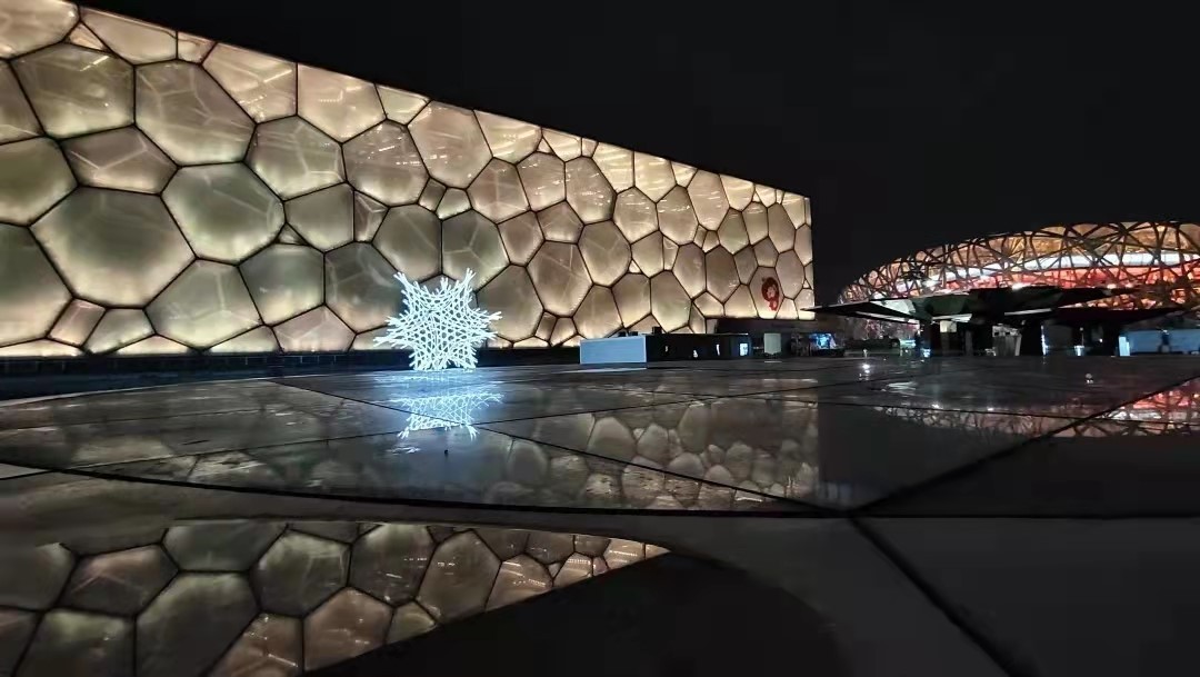當天晚上,“冰立方”外觀特意亮起致敬中國隊奪冠的金色燈光。“冰立方”1600余名運行團隊成員和志愿者完成本屆冬奧會和冬殘奧會全部服務保障任務之后,在場館看臺共同唱響《歌唱祖國》——五星紅旗迎風飄揚,勝利歌聲多么嘹亮,歌唱我們親愛的祖國,從今走向繁榮富強……