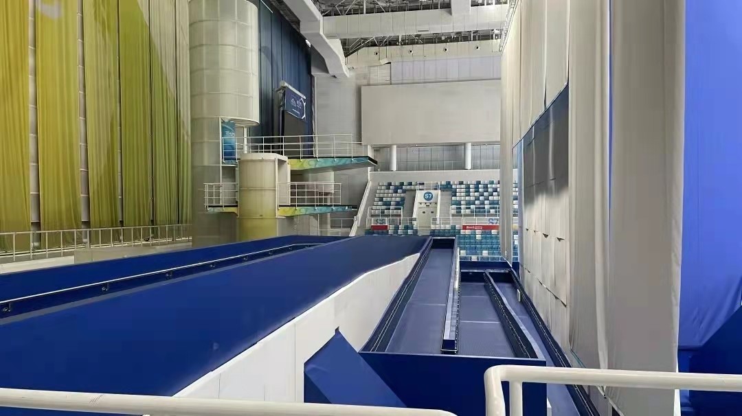 在國家游泳中心,這塊北京2008年奧運會時的游泳、跳水和花樣游泳比賽場地,蔚藍色的泳池被四塊晶瑩剔透的冰壺賽道代替,成為北京冬奧會、冬殘奧會冰壺和輪椅冰壺比賽場館。