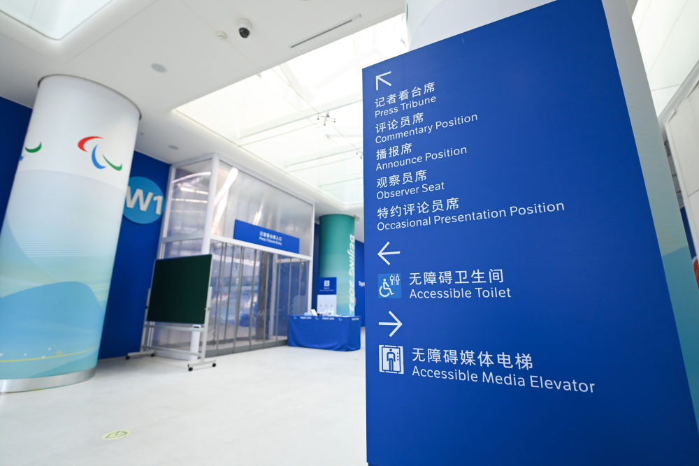 這是在國家游泳中心“冰立方”內(nèi)拍攝的一處指示標牌。新華社記者張博文攝