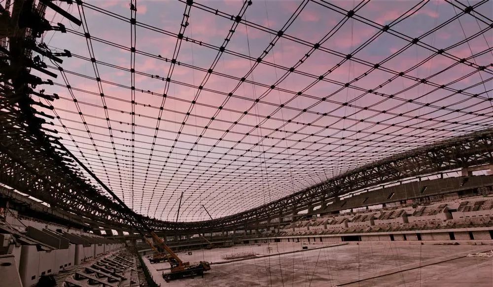 國家速滑館采用了雙曲面馬鞍形單層索網(wǎng)結(jié)構(gòu)屋面設(shè)計,通過49對承重索和30對穩(wěn)定索編織成長跨198米,短跨124米的索網(wǎng)狀屋面,再鋪設(shè)1080塊4×4米單元屋面板組裝而成,是目前世界上規(guī)模最大的單層雙向正交馬鞍形索網(wǎng)屋面體育館。采用這種索網(wǎng)結(jié)構(gòu)設(shè)計,“冰絲帶”的用鋼量僅為傳統(tǒng)屋面的四分之一。通過采用國產(chǎn)高釩封閉索,“冰絲帶”破解了屋頂索網(wǎng)結(jié)構(gòu)高釩密閉索“卡脖子”技術(shù),推動建成國內(nèi)首條生產(chǎn)線,打破了進(jìn)口索的壟斷地位,填補了國產(chǎn)索在國內(nèi)大型場館的應(yīng)用空白。2020年5月,國家速滑館斬獲“2019年度中國鋼結(jié)構(gòu)行業(yè)的最高工程大獎——中國鋼結(jié)構(gòu)金獎年度杰出工程大獎”。