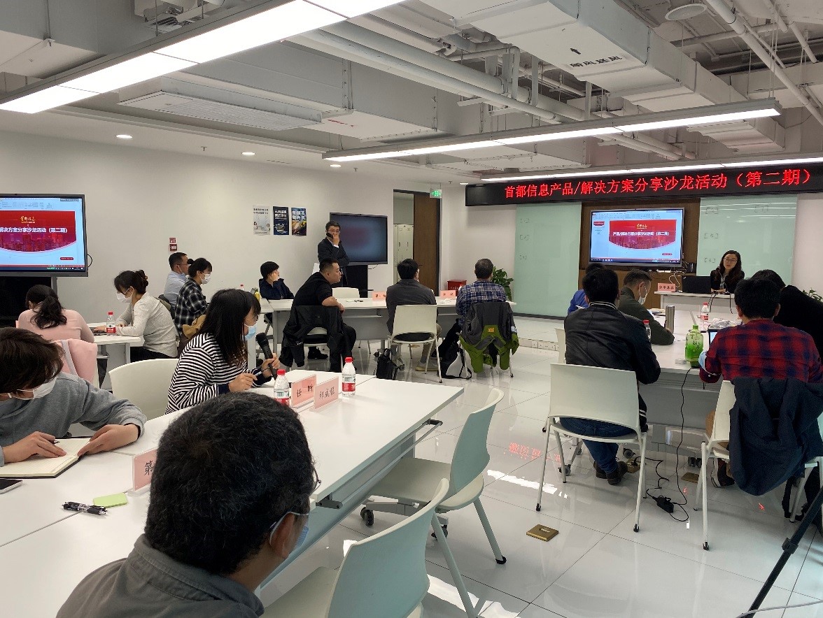 兩次分享沙龍過程中,來自首信科技公司、首信云公司、首信醫(yī)聯(lián)公司、組工事業(yè)部、公積金事業(yè)部、政務事業(yè)部、業(yè)務拓展部、網絡業(yè)務部、技術中臺大數(shù)據中心、市場部等10家單位的16位嘉賓,圍繞專業(yè)化和產品化主題,分別介紹了自身成熟產品與解決方案。同時,與會人員還重點解讀了國家政策和行業(yè)背景、業(yè)務基本知識,以及目前業(yè)務概況、市場分析、業(yè)務定位與交付能力、產品功能介紹、市場與銷售行動路徑、目前成果等主要內容。在沙龍活動研討交流環(huán)節(jié),與會人員圍繞所分享產品的行業(yè)與用戶需求痛點、商業(yè)模式、產品落地性、市場銷售的具體策略與行動等方面,以及本單位市場銷售方面的情況,作了觀點和意見分享,現(xiàn)場交流氣氛熱烈。