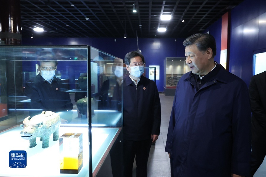 10月26日至28日,中共中央總書記、國家主席、中央軍委主席習近平在陜西省延安市、河南省安陽市考察。這是28日下午,習近平在安陽市殷墟博物館考察。 新華社記者 鞠鵬 攝