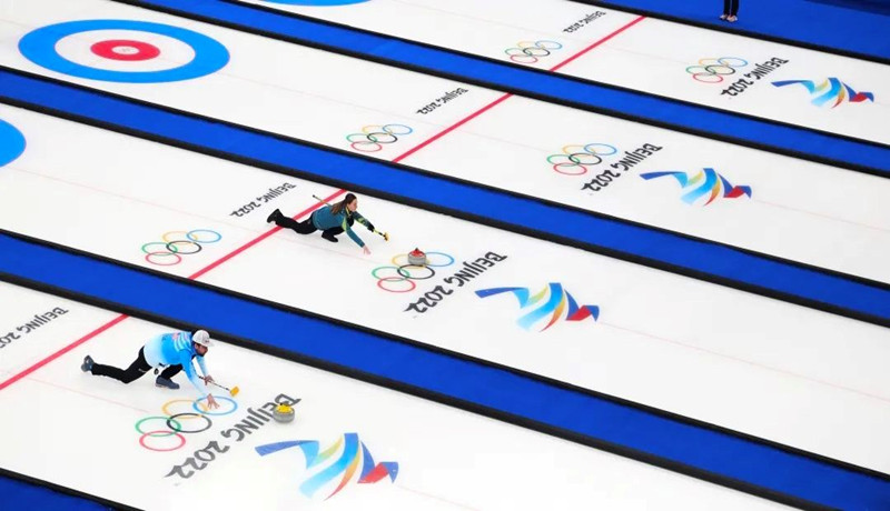北京2022年冬奧會(huì)冰壺混合雙人比賽進(jìn)行中