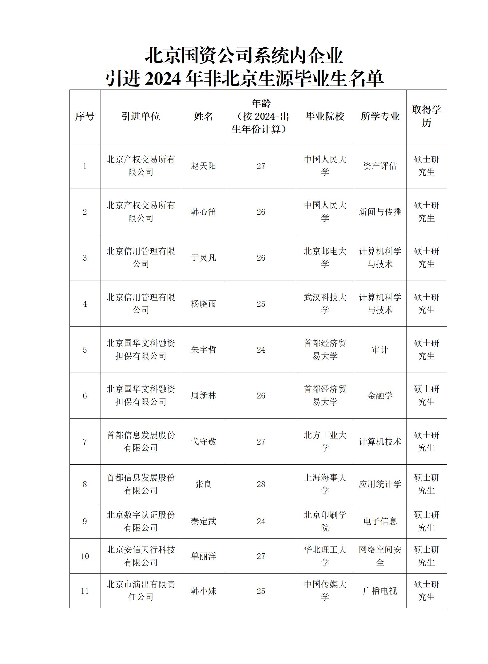 為加強畢業(yè)生接收工作社會監(jiān)督,現(xiàn)將我公司系統(tǒng)內(nèi)企業(yè)引進2024年非北京生源畢業(yè)生予以公示。